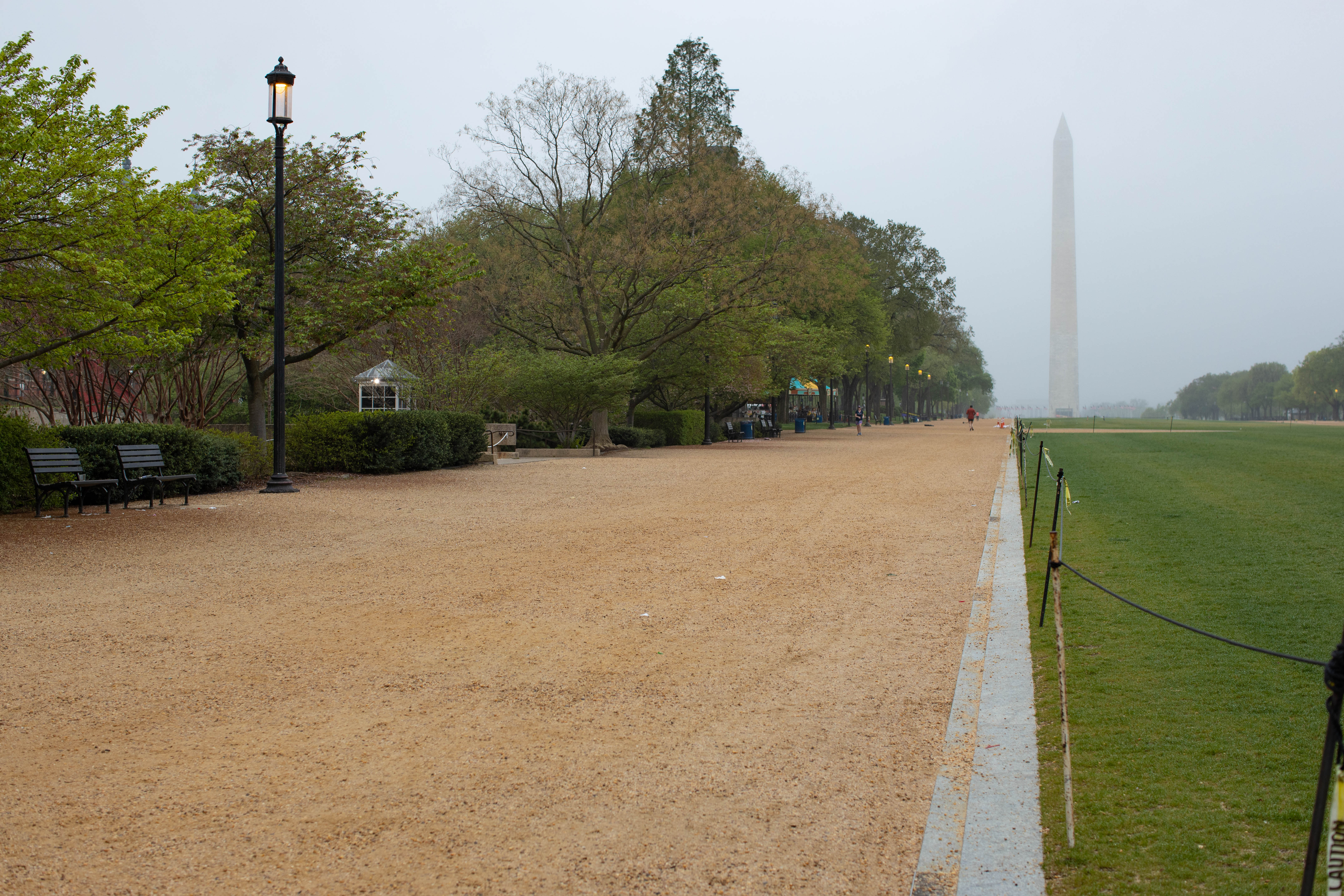 You’ll notice from my photos that it was quite moist this morning. You can see that the Washington Monument is somewhat covered at times by the low clouds. It appears that I just missed seeing the cherry blossoms in full bloom, but there are a couple photos of the few blossoms I could find.