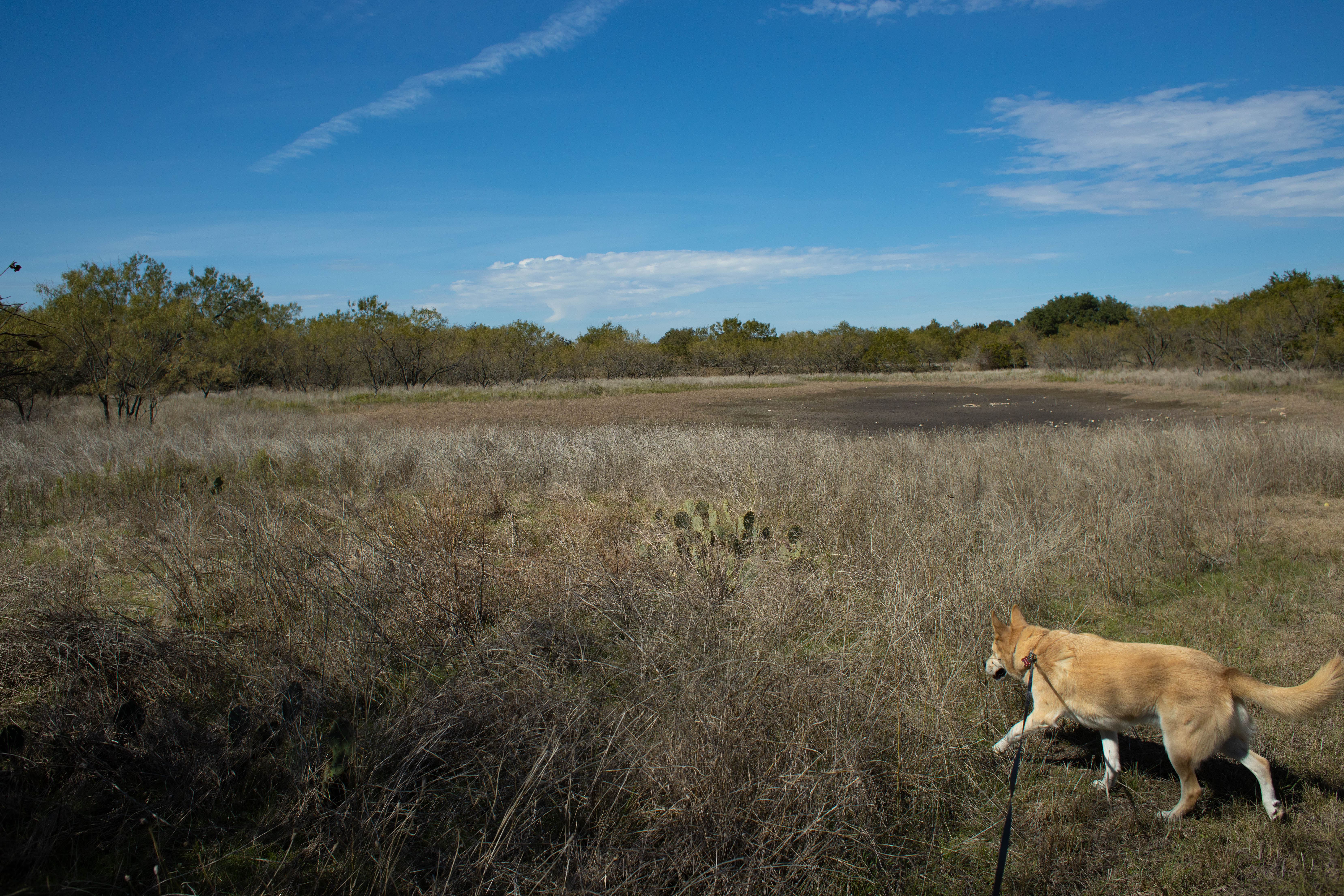 When we finally got to the duck pond, well it was dry. I should have expected since summer is just now over and we haven’t had enough rain yet to fill up these ponds. And, needless to say, there were no ducks.