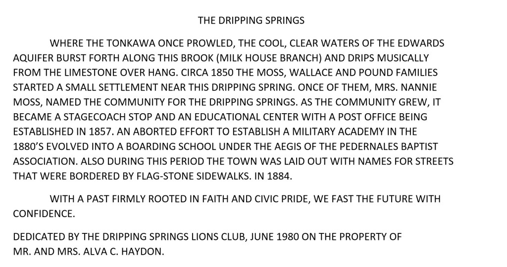 So, if you’re ever in Texas, you might want to explore some of the many small, historic towns in our state. You might even pass through Dripping Springs – and now you know how it got it’s name.