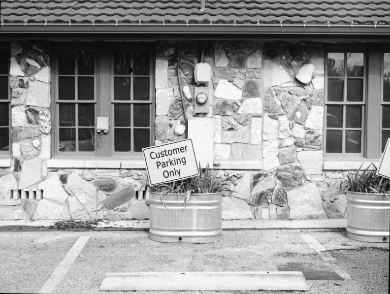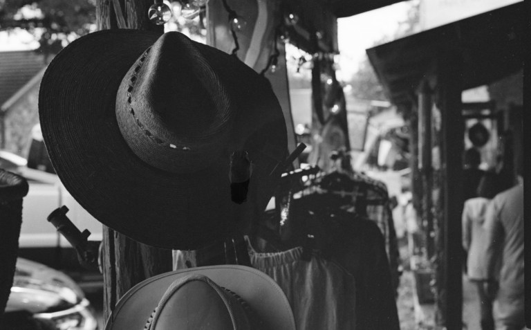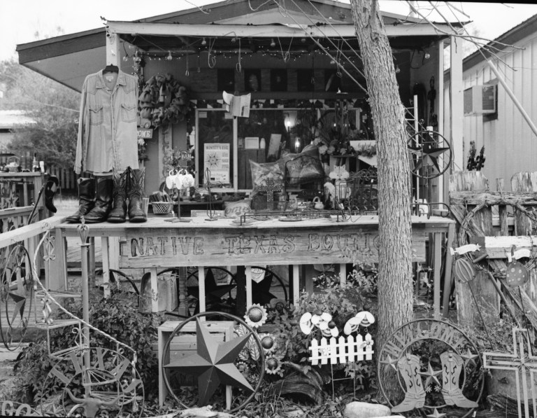 Today, I took a walking tour of Wimberley, Texas. Wimberley is a small town about 25 miles south of Austin, in the Texas Hill Country. The small town center has lots of shops and restaurants, and it’s fun to walk and people watch. I’ve also been wanting to take some medium format shots, since it’s been quite a while since I’ve used my Bronica. These were all shot with my 75mm lens.