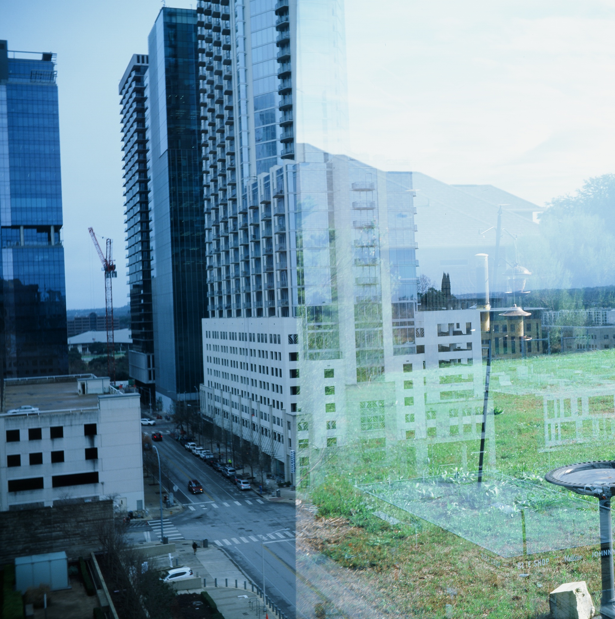 Here’s some of my Ektachrome 120 images – taken with my Zeiss-Ikon. Notice my accidental double exposure. The old Zeiss doesn’t stop you from winding the film all the way through without taking one photo. You have to stop at the “1”, and you have to go all the way to the next frame number, or… you could end up overlapping frames – as you can see I did. After a couple frames I remembered how it works. For as old as this camera is (probably from the 1940’s) I’m surprised at how well it works, at how nice the photos look. Exposure is not too big an issue – you just have to shoot when there’s enough light. Focusing is my biggest problem. Some of these cameras employed range finder focusing, but on mine you have to estimate and set the lens to the number of meters you are from your subject. It’s a slightly wide angle lens, with good depth, so you really only have to pay close attention on close shots.