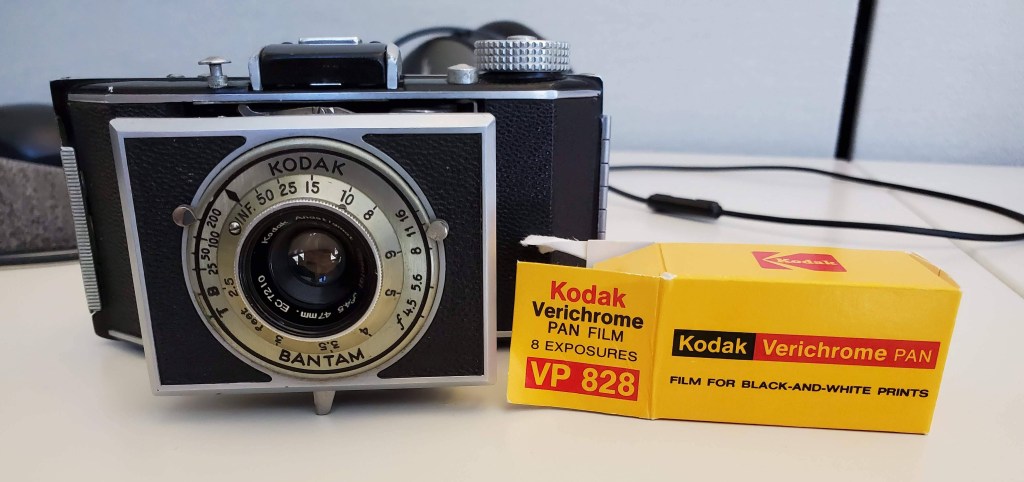The camera I’m using is a Kodak Bantam, from the 1930s. It seems to have a fairly clear lens, and the shutter seems to be accurate at higher speeds.