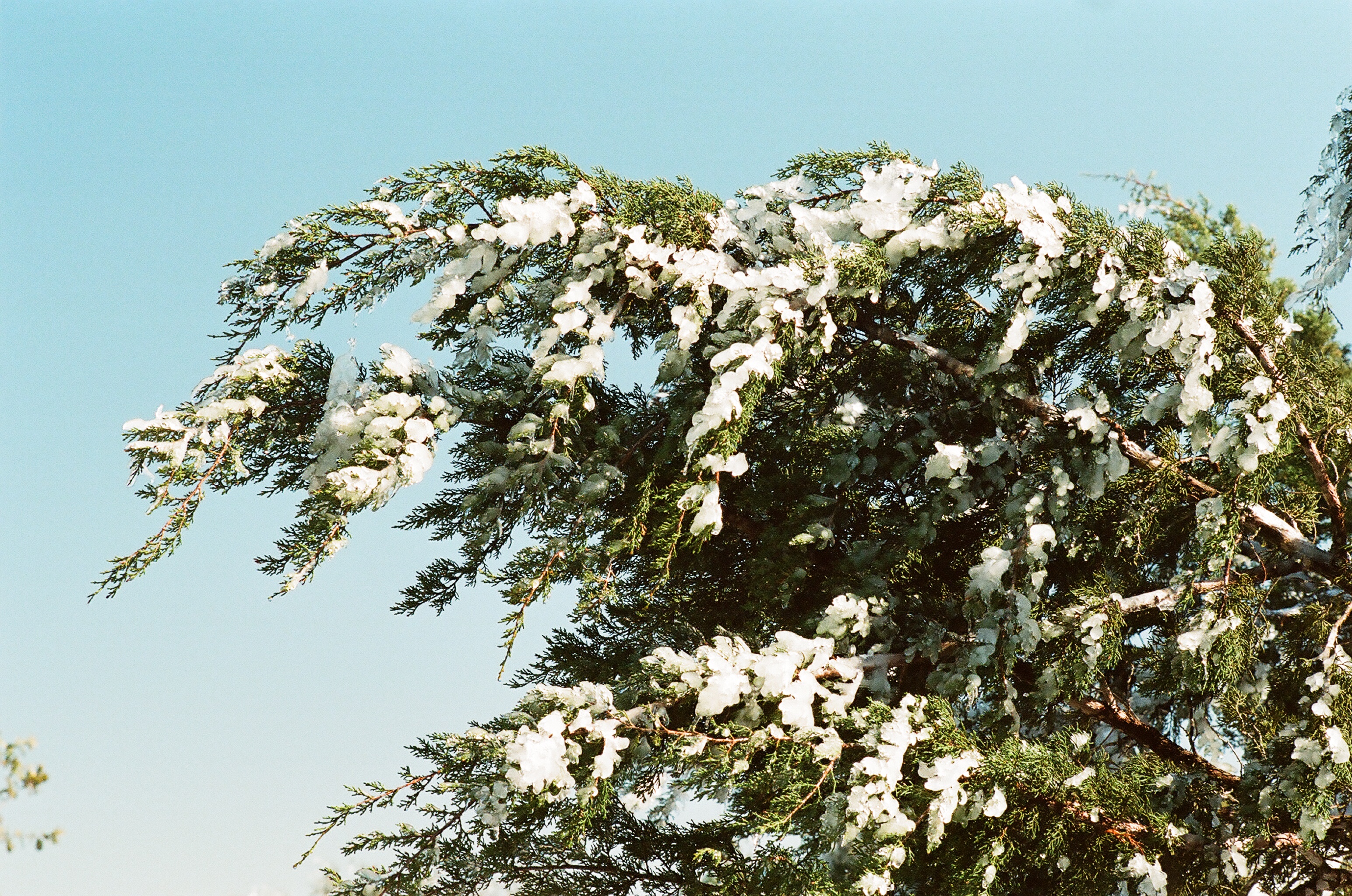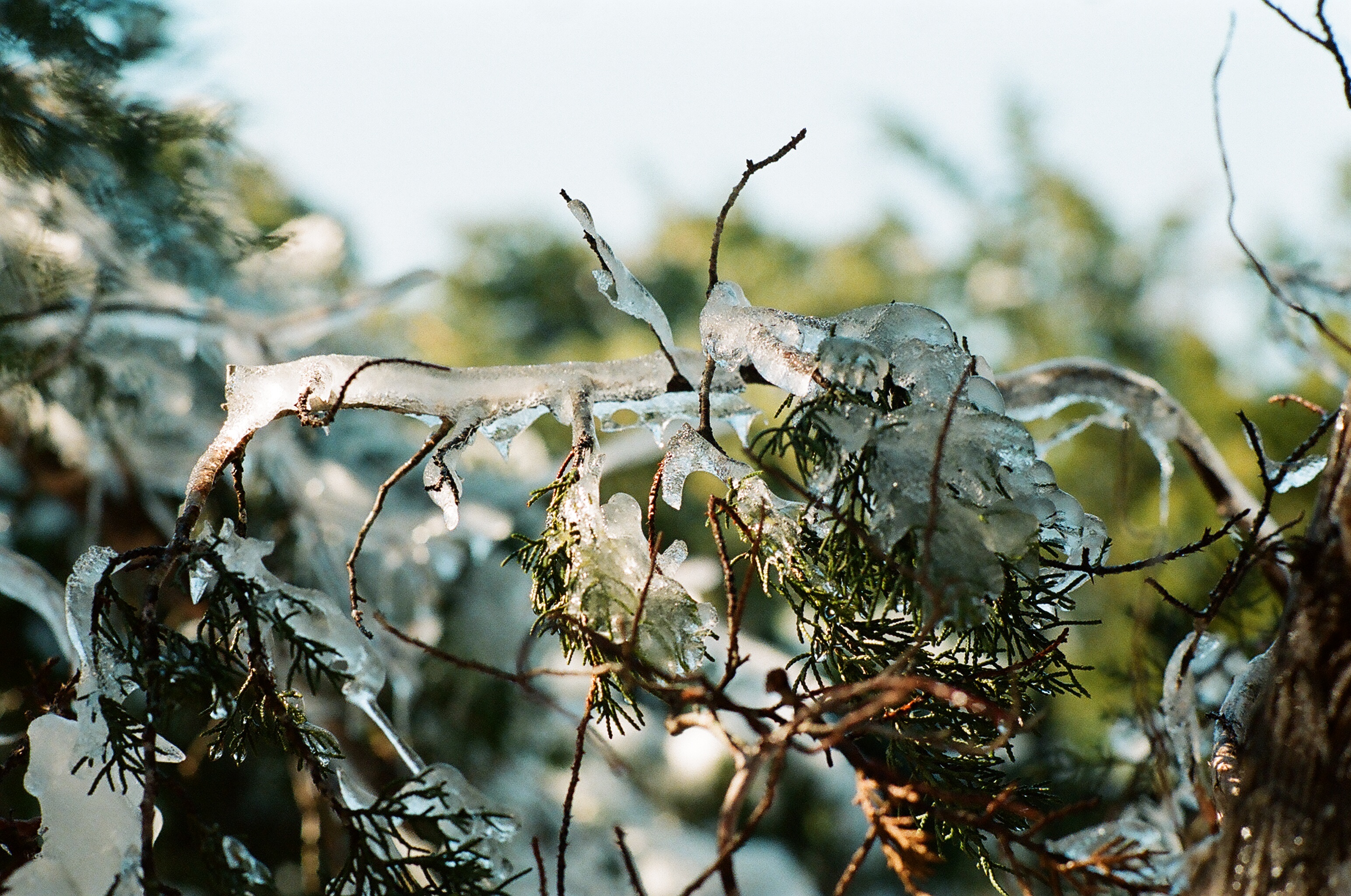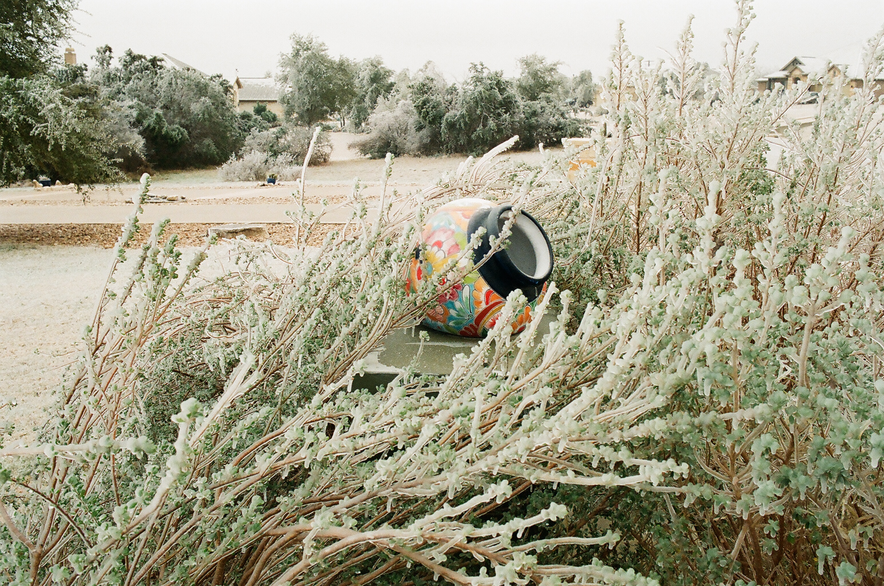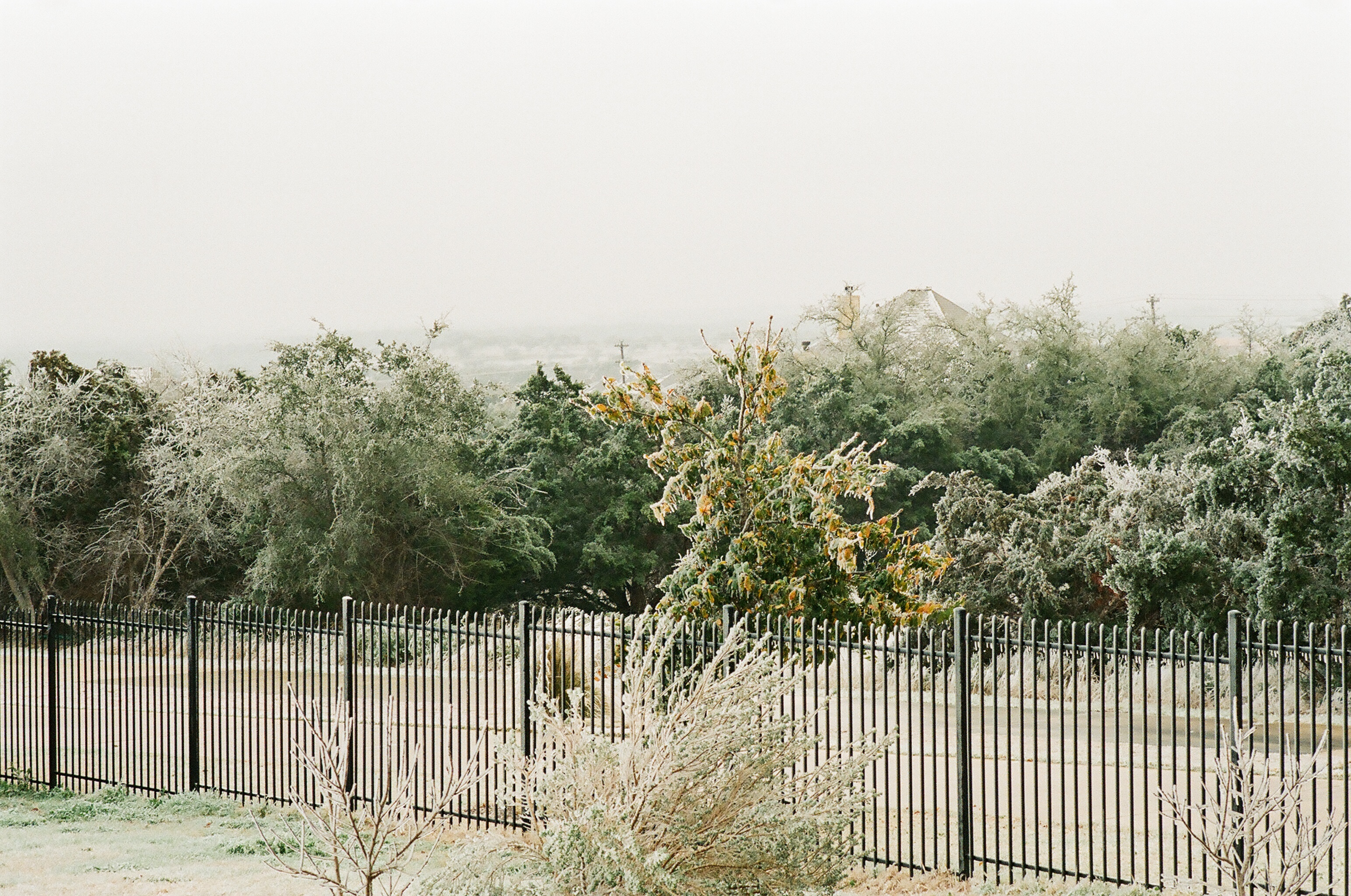 The FE2 meter (and the FE, for that matter) works well. Simple, center weighted averaging, but it works well in most lighting conditions. Here’s a few photos of a recent ice and snow storm we had in the Texas Hill Country (very rare occurrence). These photos are taken with my FE2 on Kodak Portra 400 film.
