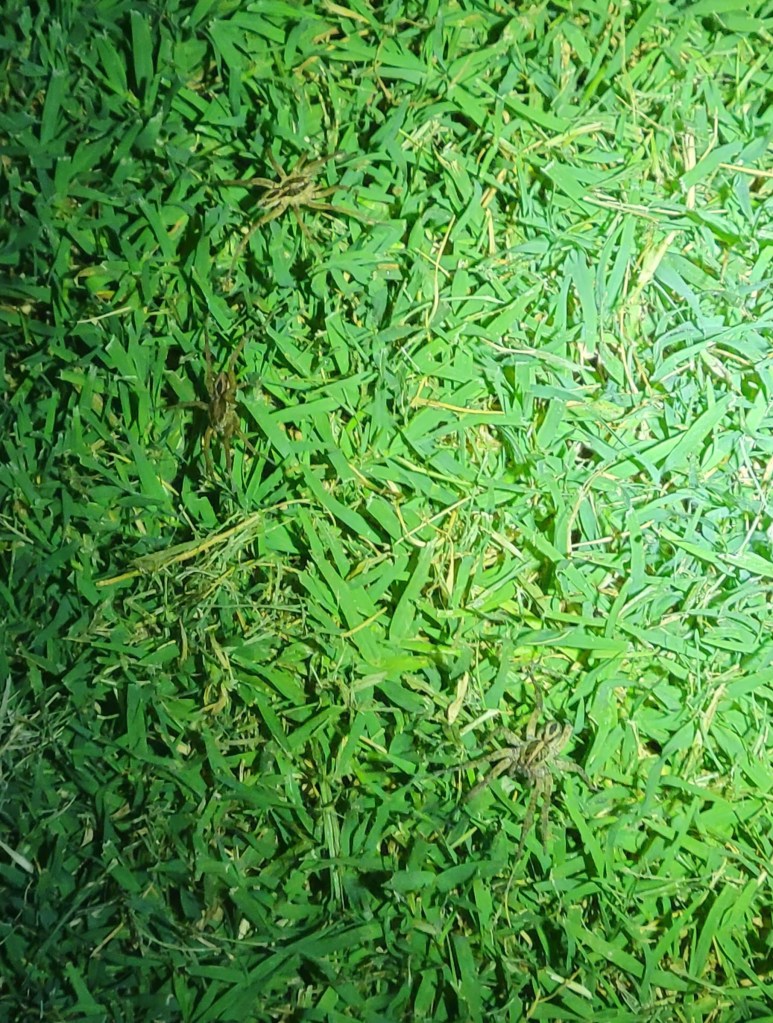 So, I noticed these little sparkles in my yard when I shined a flashlight on the grass at night. Sorry the image is a little blurry/shaky, but it’s hard to get a good shot when you’re holding a flashlight in one hand and taking a photo with the other…