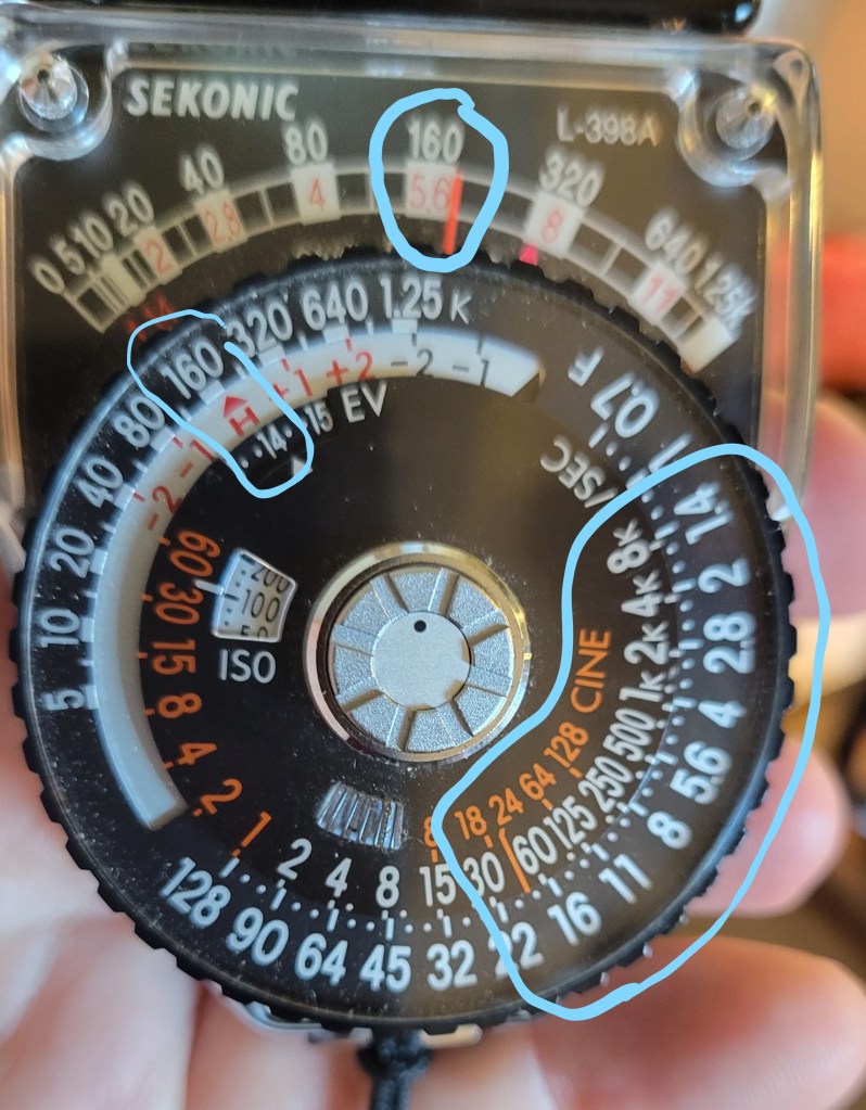 Next, this meter is pretty simple. As old as it is, it’s been basically the same since 1976 when it was first released. You can set an ISO value on the dial, then after metering, you move the dial so the arrow points to the exposure value identified by the meter needle. Then you will see appropriate f-stop and shutter speed combinations to choose from. Pretty much the same as any other analog meter out there.