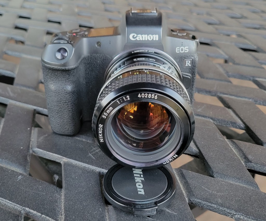 I have a Canon 1.2 lens, and an Olympus 1.2 lens, but I’ve never tried a Nikon 1.2 lens – so I found a NIKKOR 55mm f/1.2 AI lens and decided to test it out.