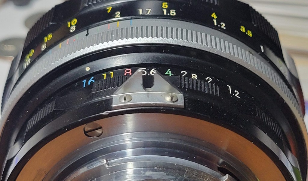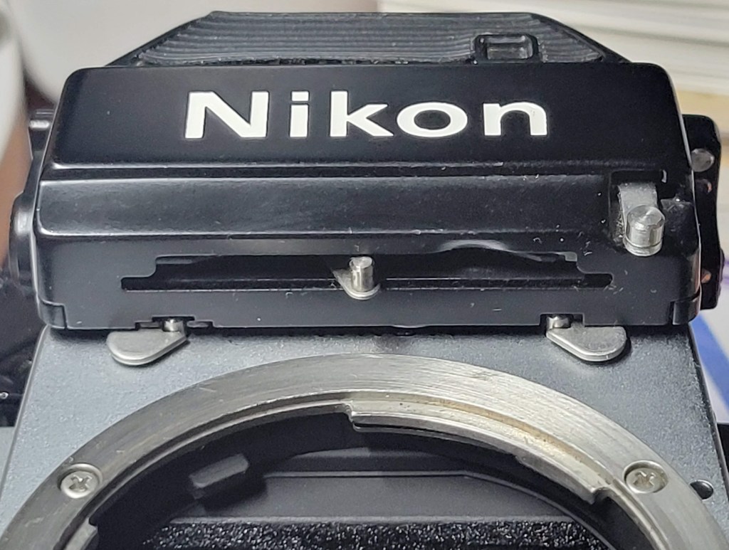 Like the F, the F2 was built as a system camera. Initially, the lenses made for the F worked the same way on the F2. In 1977, Nikon revised the way their lenses linked to the camera body, and the last 2 versions (F2A and F2AS) could not use the older lenses except in stopped down mode – but, of course, that wasn’t too big a deal, and compatibility is a big deal. Stopped down mode is the original way the first TTL meters worked. Basically, as you stopped down the lens, the meter measured the light. The viewfinder also got darker and darker, and it got harder and harder to see and, especially, focus. So, focusing and metering were done in two distinct steps. When the F was released, it allowed metering with the lens fully open, and it only stopped down to the selected f-stop as the photo was being taken. Lenses that worked this way were known as automatic lenses, or lenses with automatic apertures. It indicated that you could focus and set exposure without darkening the lens as you set your aperture. To accomplish this, Nikon chose to add a method to link the lens to the meter in the prism so the camera body would not need to be revised or changed. The way the Nikon F and early F2 prisms worked, there was a small pin on the front that coupled with the lens via a small triangular or semi-circular connector on the outside of the lens with a slit in it to engage the pin on the prism. As you changed the f-stop on the lens, the connector moved the pin on the prism, so it knew which f-stop was selected, while the lens stayed wide open until you took the picture (or pressed the depth-of-field preview button).