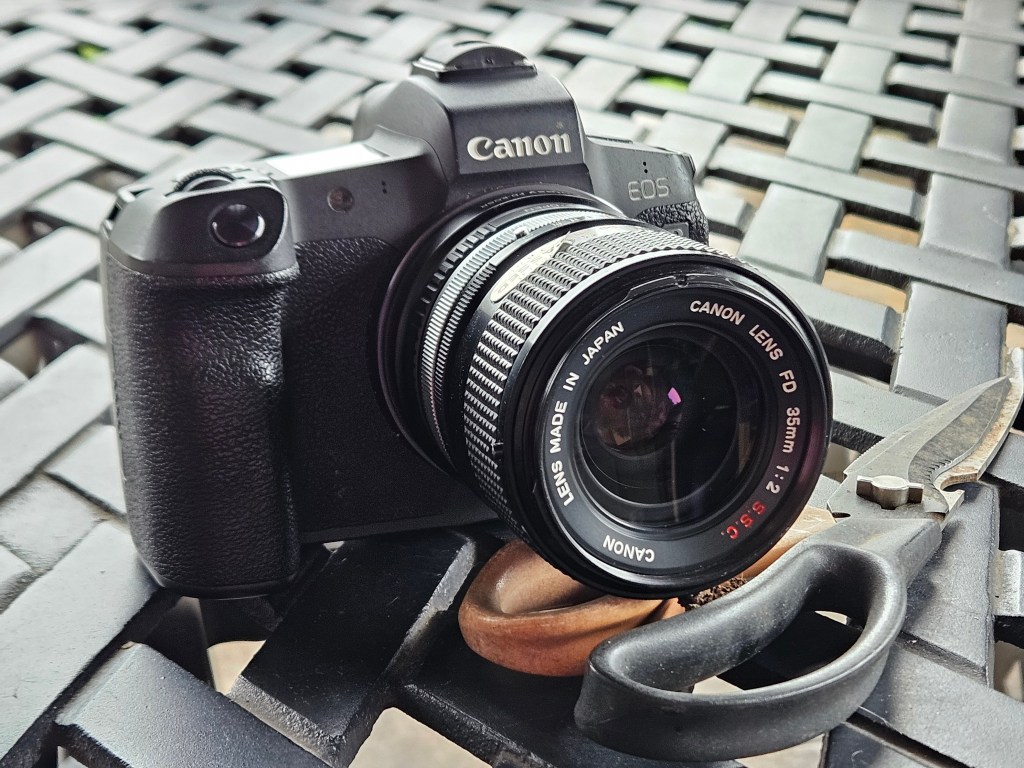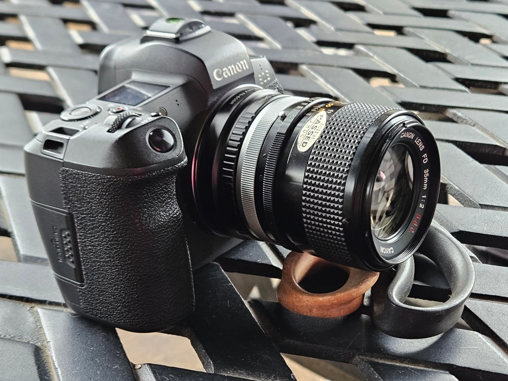 So, with that in mind, I wanted to test it. My setup is a Canon EOS R with RF to FD/FL adaptor, and of course the Canon FD 35mm f/2 lens itself.