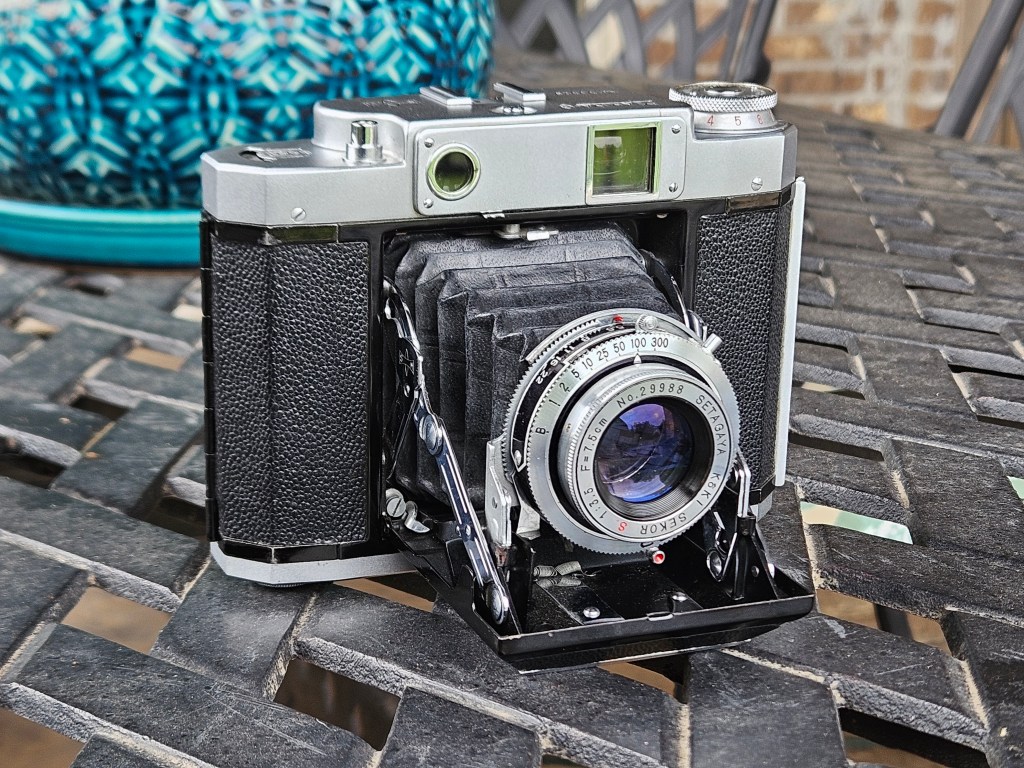 Below is an image of the front side of the Mamiya, folded/closed. These folders are relatively compact and easy to carry – which is one of the nice things about them.