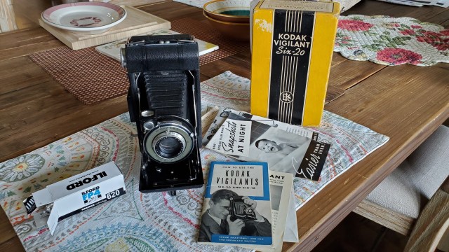 This old camera is actually in pretty good shape. There were a few versions of the Kodak Vigilant camera. Mine has a Kodak Anastigmat 103mm f/4.5 lens with a Kodamatic No. 1 shutter, with speeds […]